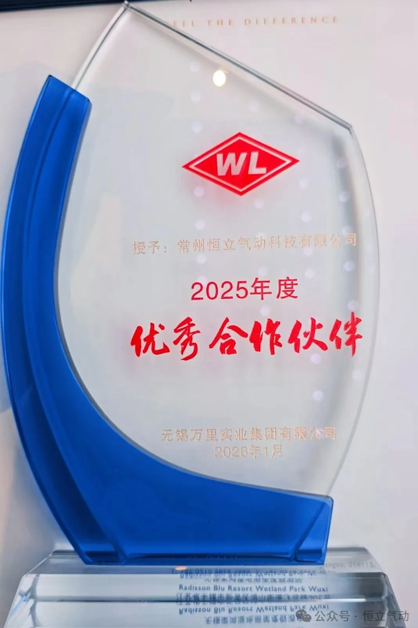 会议期间,万里集团对过去一年中表现卓越的合作伙伴进行了表彰。凭借在技术研发、产品品质、准时交付及全程服务等方面的杰出表现, 常州恒立气动科技有限公司被授予“优秀合作伙伴奖 ” 的荣誉,这一荣誉是对双方长期稳固合作与互信关系的充分肯定,也标志着恒立气动的综合实力与服务水准已获得客户端的系统性认可,是双方长期稳固、互信互惠合作关系的里程碑式见证。